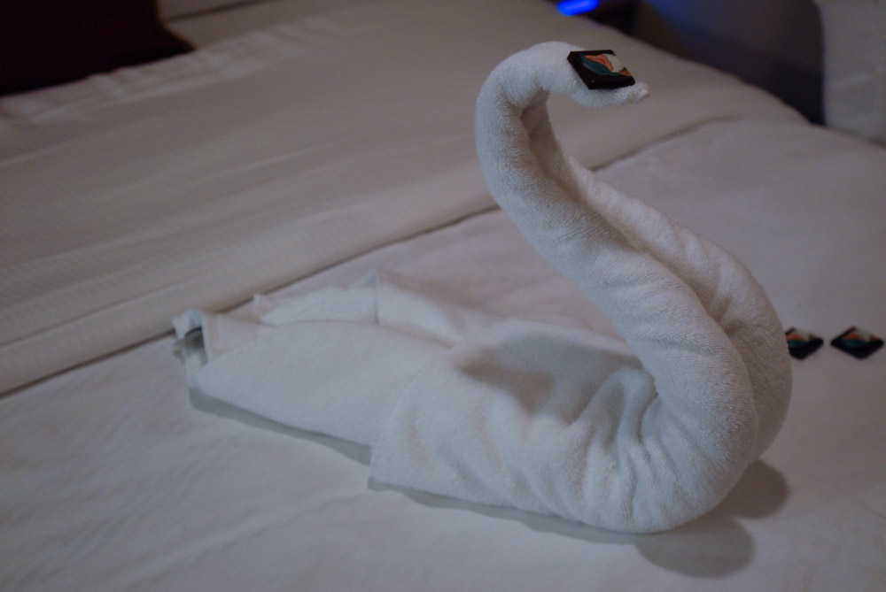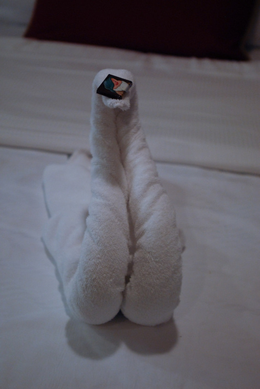 I know you are all waiting for it… here is our towel creature of the night. I think this one is a frog.