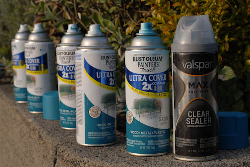 2. 5 cans of Rust-OLEUM’s Satin lagoon spray paint