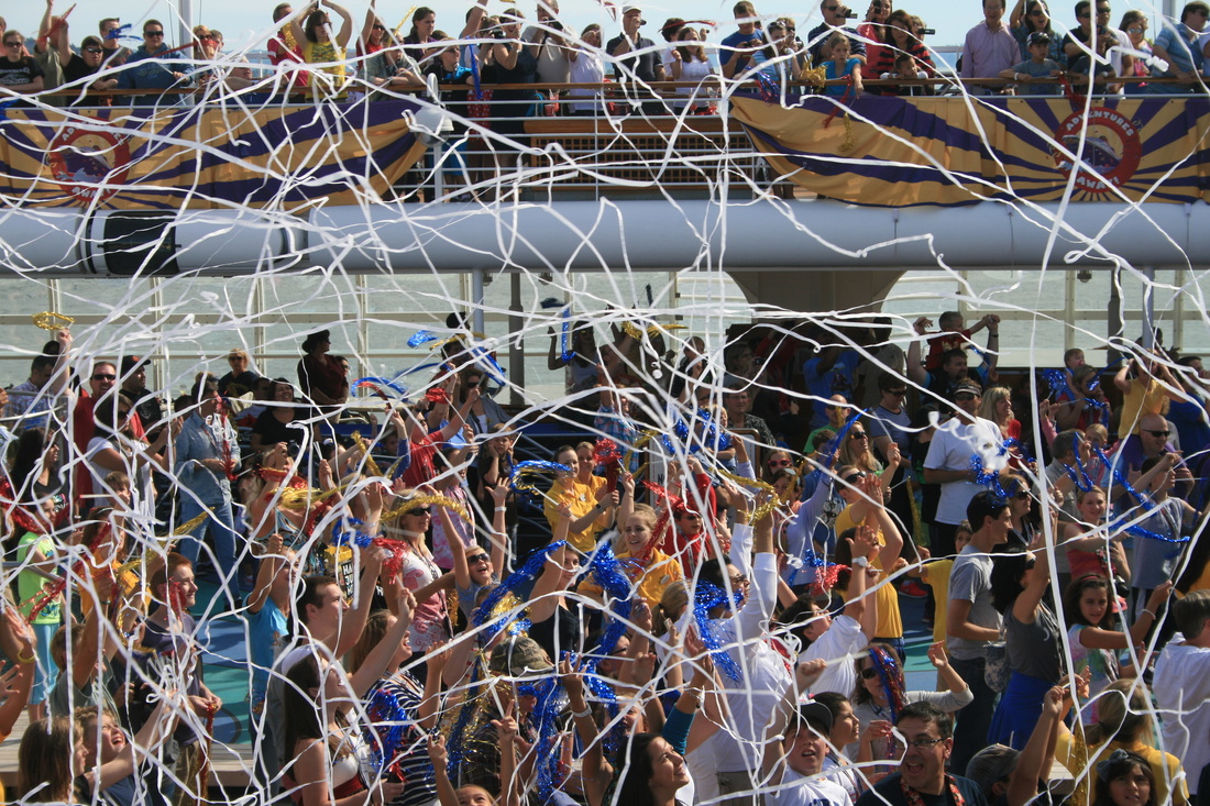 They have the view from the front of the ship projected on the movie screen over the Goofy pool, so you can see where the ship is headed. If I were to do it again, I would have gone and hung out in the hot tubs for a while!