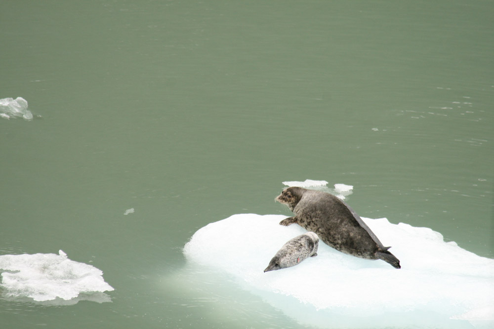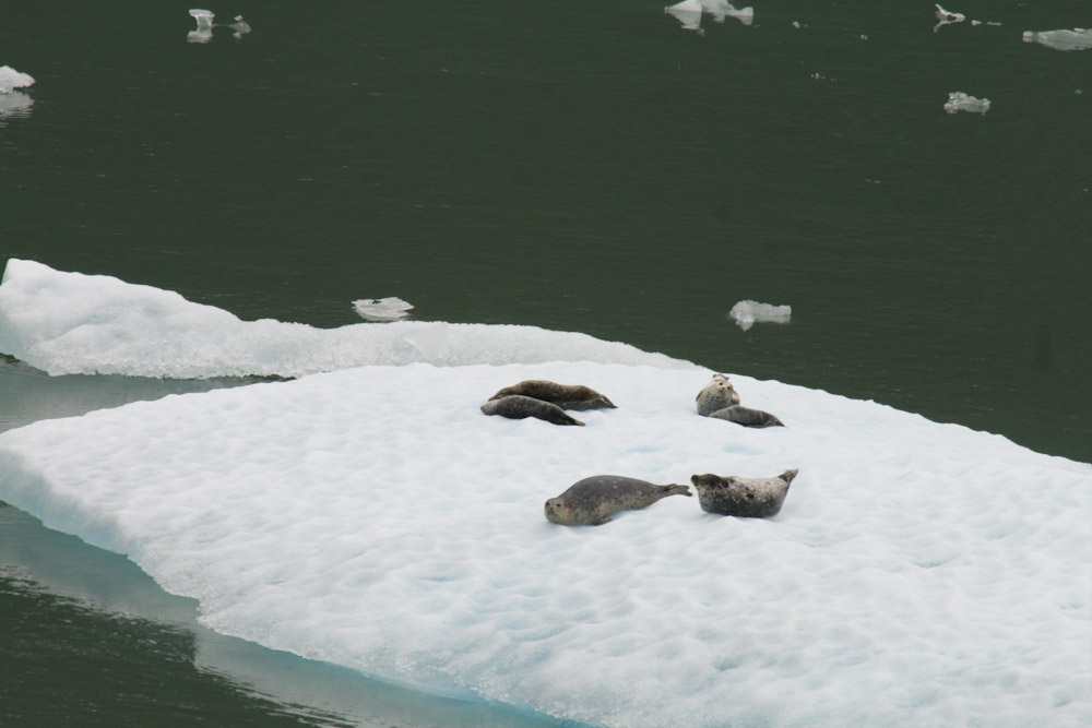 Sawyer glacier, if you look really close to the icebergs you can see hundreds of seals.