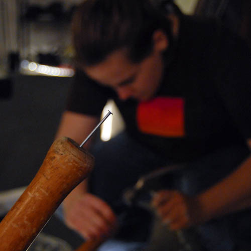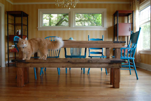 Side note: One cool tip I got from good old Martha, was to put nails into the end of each chair leg. This raises the chairs off the ground and makes it easier to get the paint all the way down to the bottom