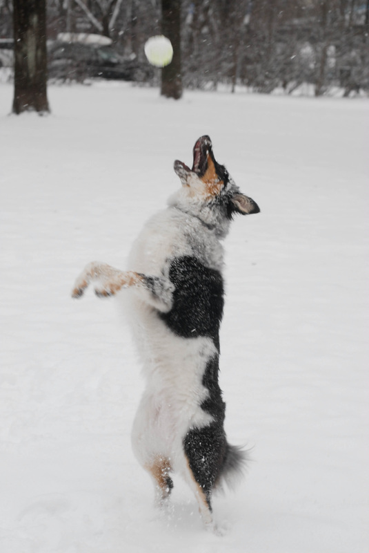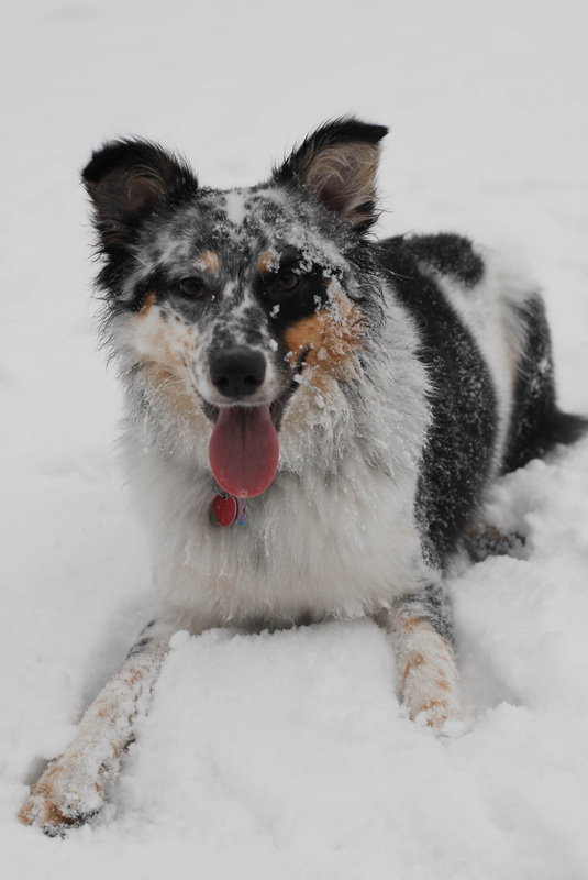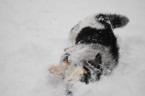 Zoey just loves being able to run free and roll in the snow!