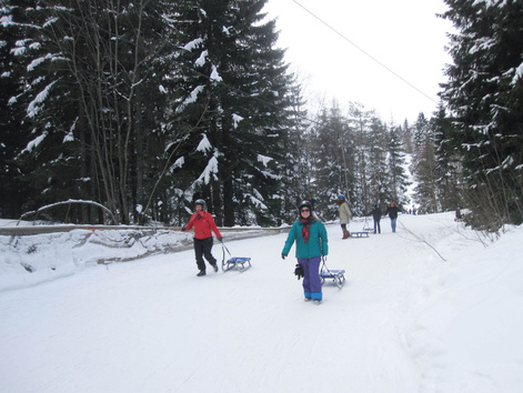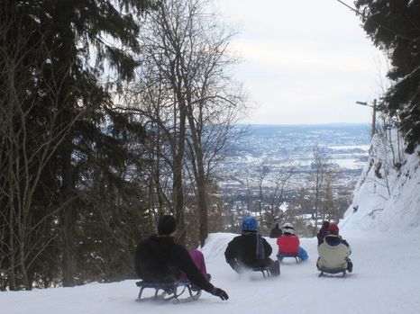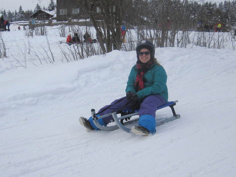 This last weekend Alex and I went sledging (sledding) at Korketrekkeren (which translates to corkscrew). It was lots of fun. We took the metro to the last stop were we rented a sledge. From there we took the almost mile long course to the bottom where there is another metro stop where we hopped on and took it back up to the top to take more trips down.