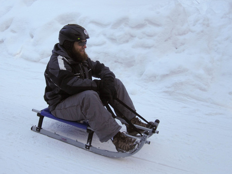 The course has crazy turns and steep falls off the sides. The sleds had the ability to be steered but no way to slow the sled down and steer at the same time. I only spun out once and Alex almost hit a wall once. Overall I think we did pretty good.