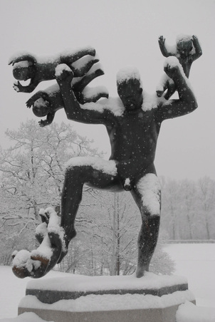 Zoey and I have taken countless walks over to Frogner Park. This park is famous for all its life size human statues all made from one artist. It was really funny the first time walk through the park with Zoey because she thought all the statues were real people and was afraid of them.