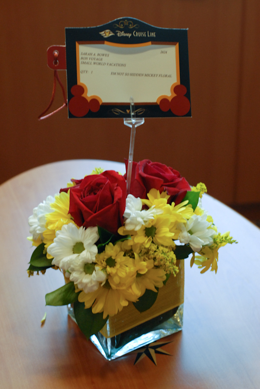 Once we were allowed to return to our rooms, we had a fun surprise from Small World Vacations (who we booked the cruise through), fresh cut flowers! They were so pretty in our room all week.