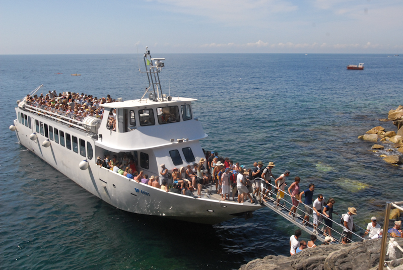 At this point we ran out of time to make any more long stops plus we were all getting a little tired. We decided just to ride the ferry to last town (Monterosso) and see the view from the boat.